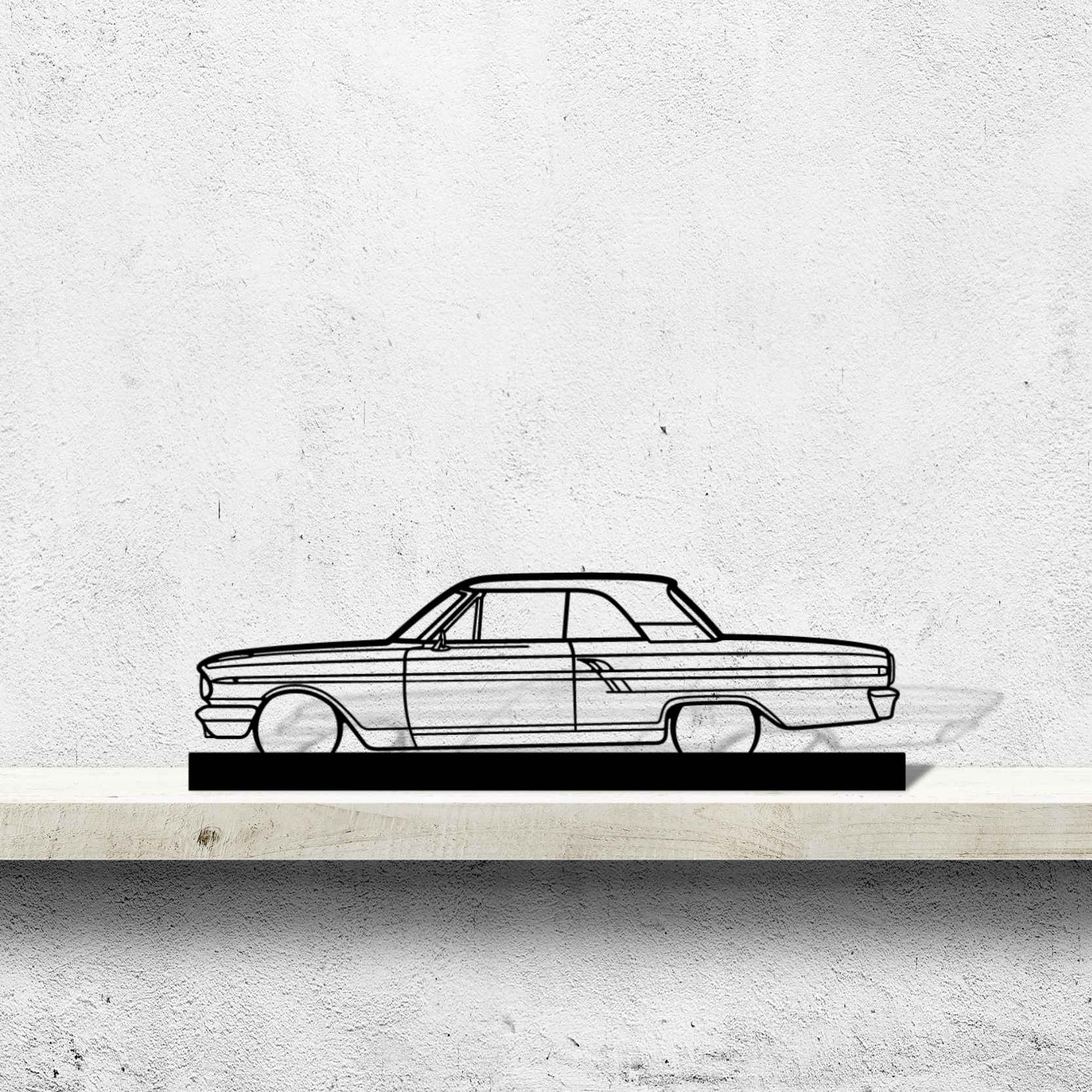 This Fairlane Coupe 1964 Standing Silhouette will give your office table, living room or garage shelf a unique look that will catch the attention to any racing, car enthusiast and will add a subtle touch to your home design.