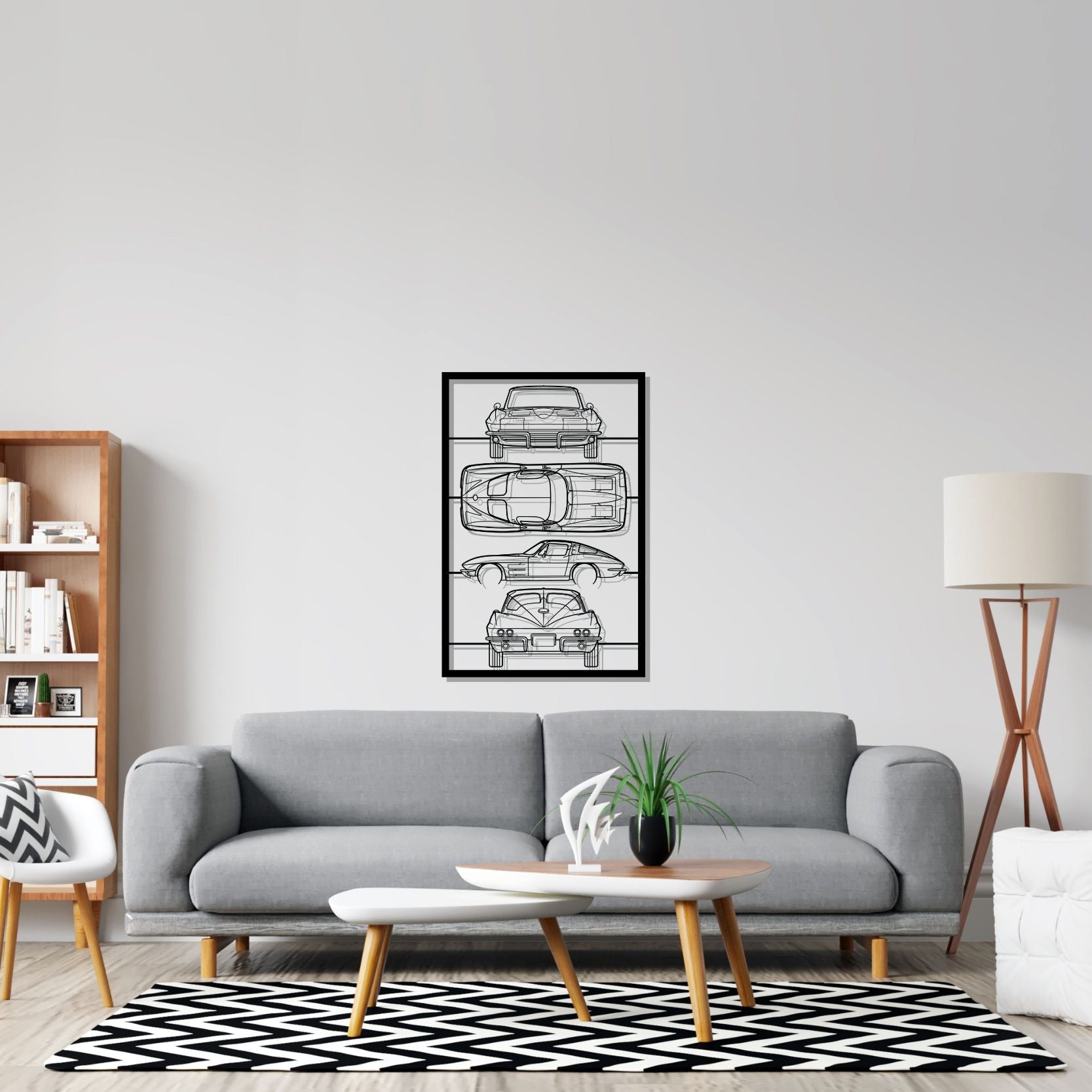 This Corvette C2 1963 Frame metal Silhouette wall art will give your office, room or garage a unique look that will catch attention to any racing, car enthusiast and will add a subtile touch to your home design.
