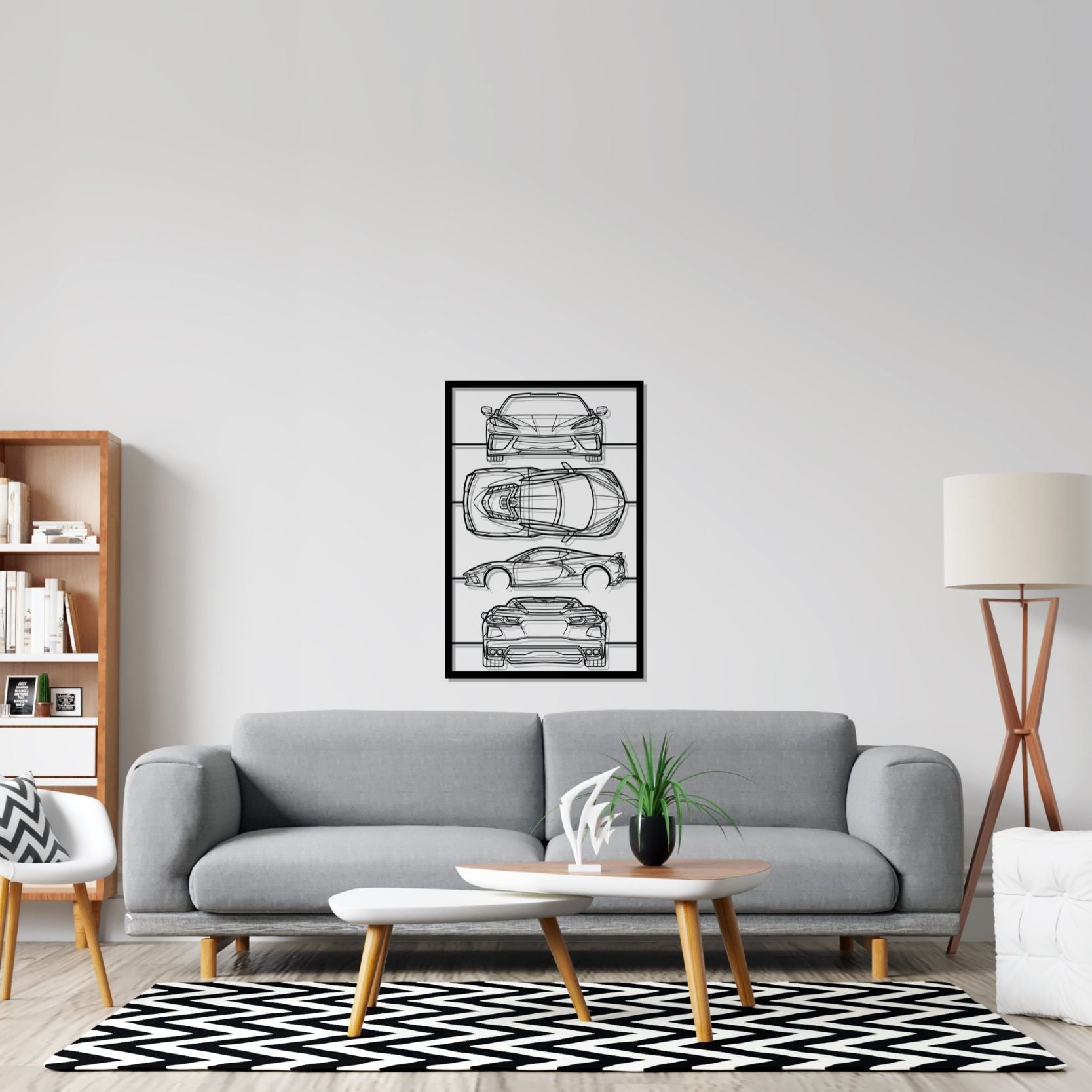 This Corvette C8 Frame metal Silhouette wall art will give your office, room or garage a unique look that will catch attention to any racing, car enthusiast and will add a subtile touch to your home design.