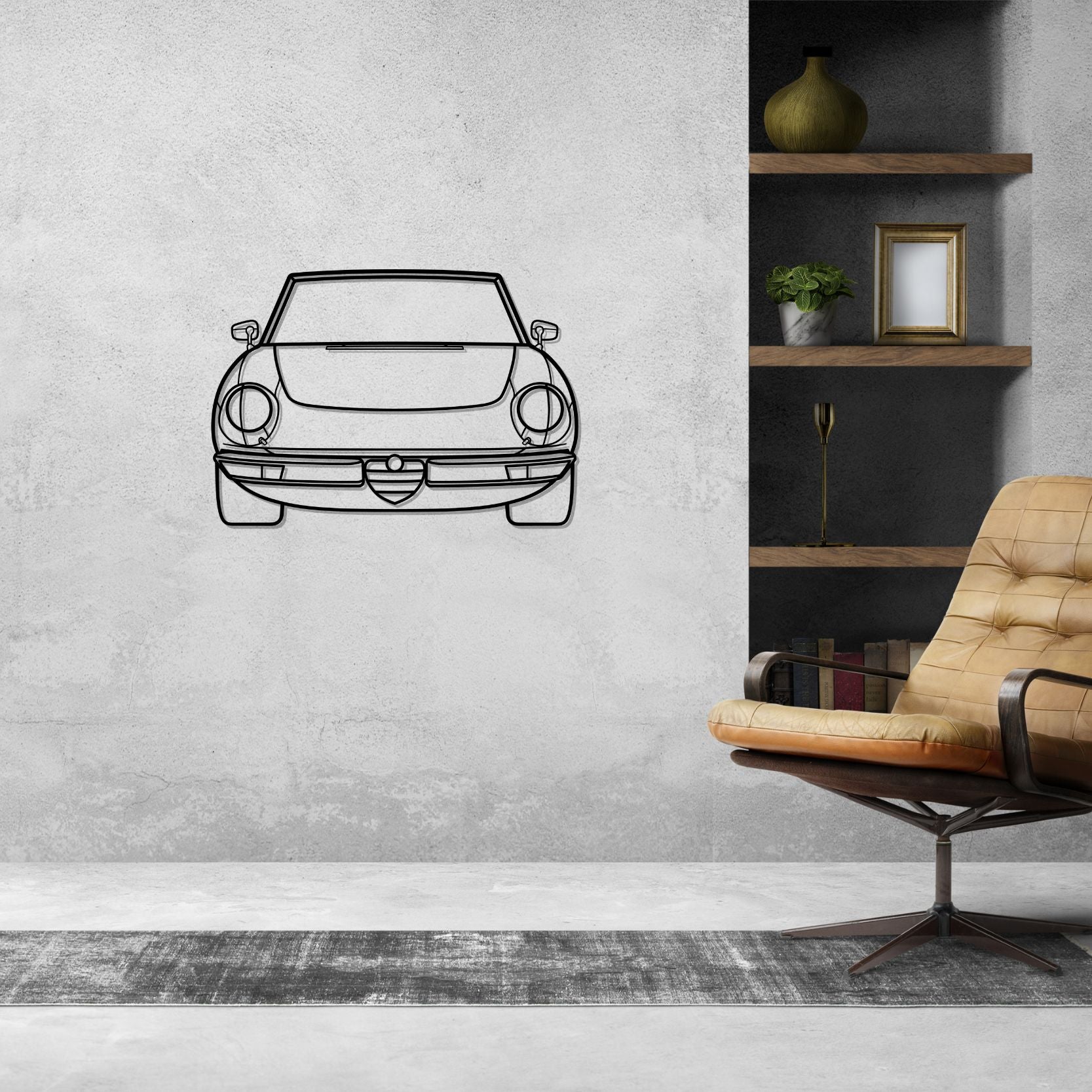 This Alfa Spider Front metal Silhouette wall art will give your office, room or garage a unique look that will catch attention to any racing, car enthusiast and will add a subtile touch to your home design.