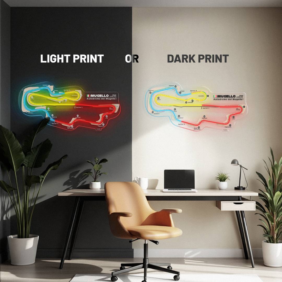 This Autodromo del Mugello Neon Race Track silhouette will add a bright spark of light to any room. Each track features the 3 iconic colors of Formula 1, the race track name alongside the distance and the country it's located in. It's the perfect way to add some color and improve the overall look while catching the attention of anyone, racing enthusiast or not.