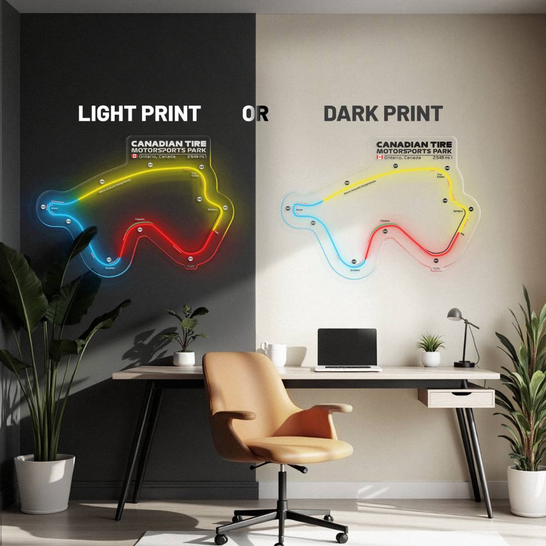 This Canadian Tire Motorsport Park Neon Race Track silhouette will add a bright spark of light to any room. Each track features the 3 iconic colors of Formula 1, the race track name alongside the distance and the country it's located in. It's the perfect way to add some color and improve the overall look while catching the attention of anyone, racing enthusiast or not.