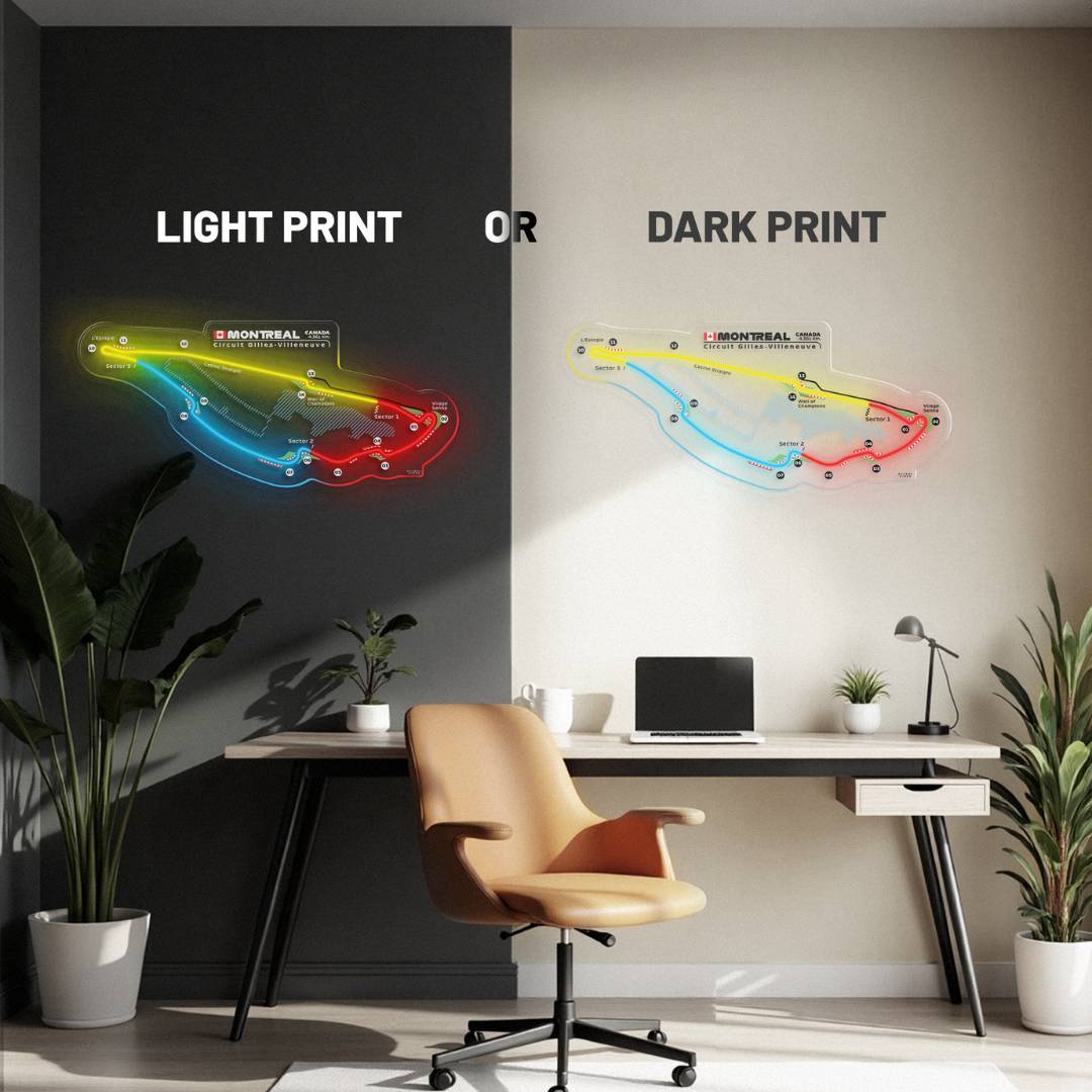 This Circuit Gilles Villeneuve Neon Race Track silhouette will add a bright spark of light to any room. Each track features the 3 iconic colors of Formula 1, the race track name alongside the distance and the country it's located in. It's the perfect way to add some color and improve the overall look while catching the attention of anyone, racing enthusiast or not.