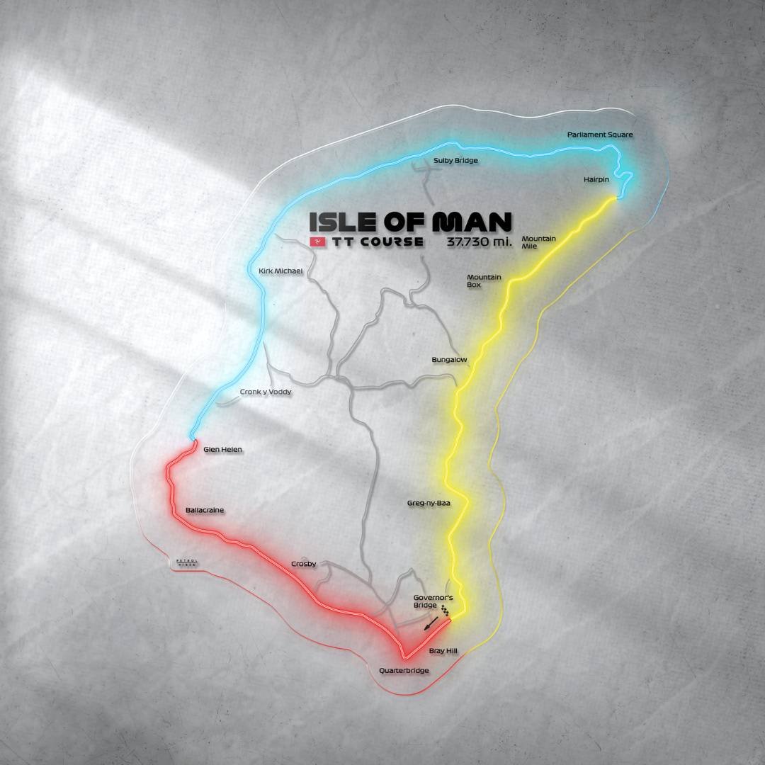 This Isle of Man TT Neon Race Track silhouette will add a bright spark of light to any room. Each track features the 3 iconic colors of Formula 1, the race track name alongside the distance and the country it's located in. It's the perfect way to add some color and improve the overall look while catching the attention of anyone, racing enthusiast or not.