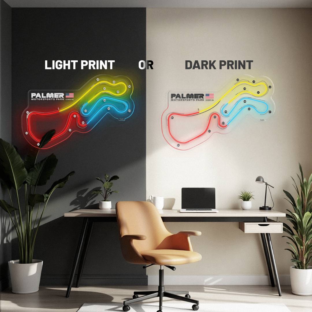 This Palmer Motorsports Park Neon Race Track silhouette will add a bright spark of light to any room. Each track features the 3 iconic colors of Formula 1, the race track name alongside the distance and the country it's located in. It's the perfect way to add some color and improve the overall look while catching the attention of anyone, racing enthusiast or not.