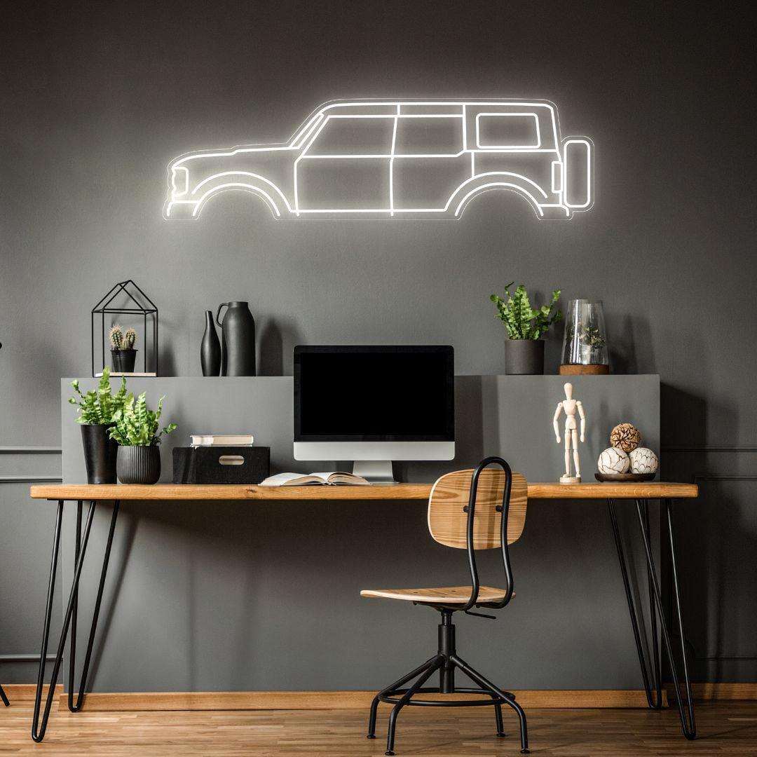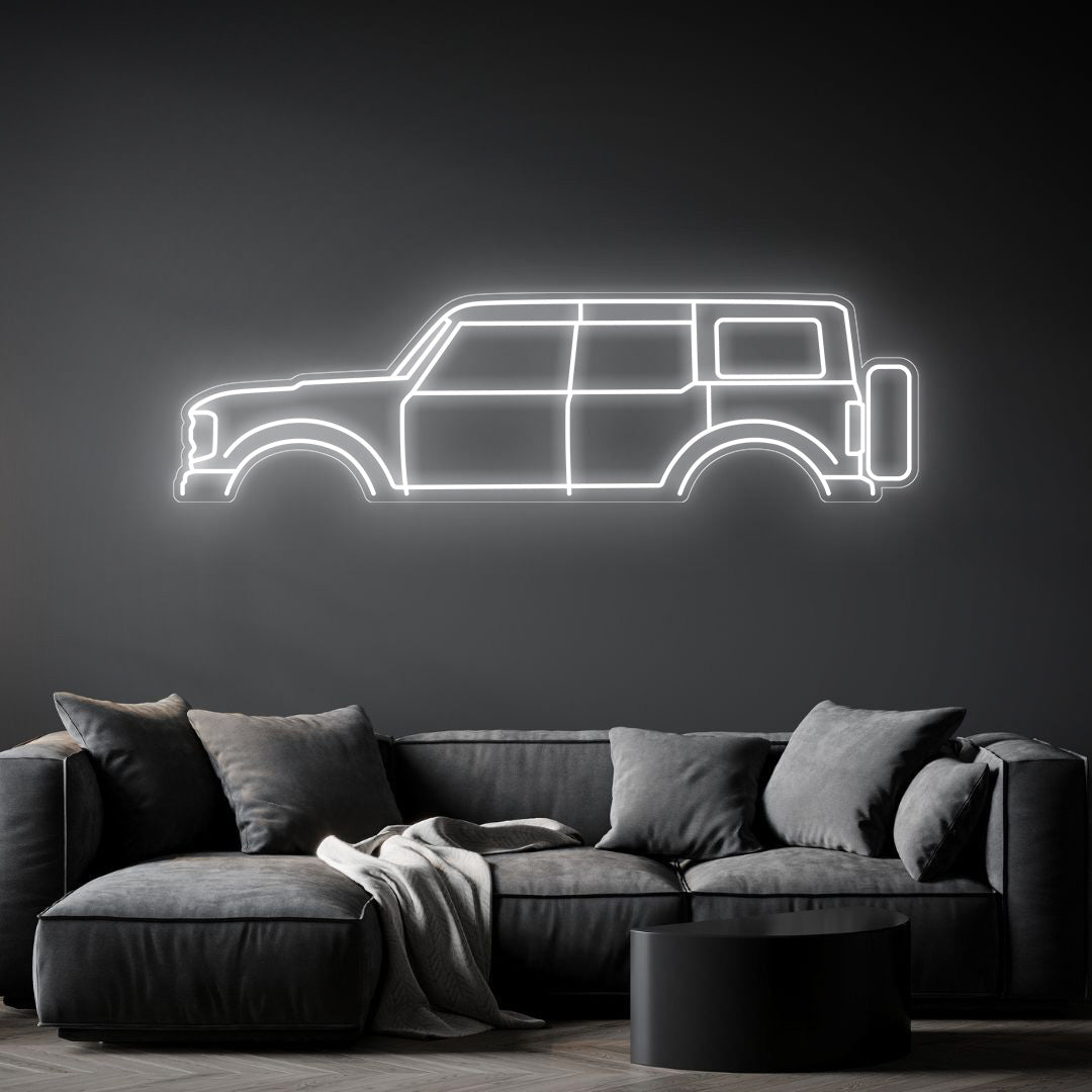 This eye-catching Bronco 2020 Neon Silhouette will add a beautiful spark of light and modern elegance to your room, office, or garage, and will catch the attention of any racing or car enthusiast.