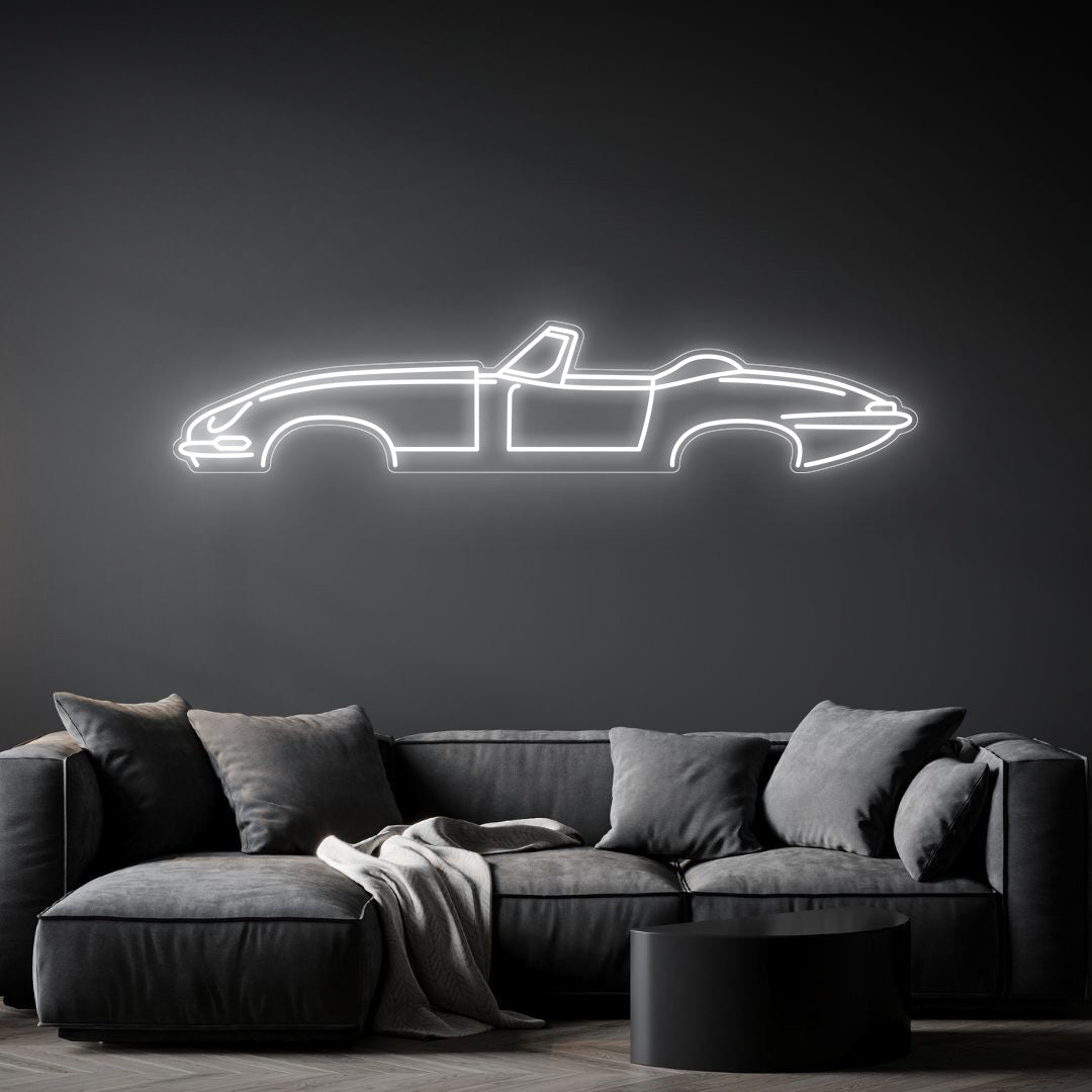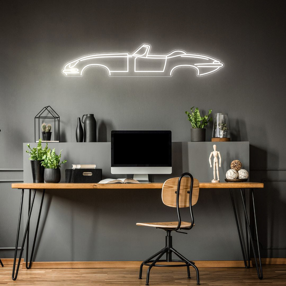 This eye-catching E type Cabrio Neon Silhouette will add a beautiful spark of light and modern elegance to your room, office, or garage, and will catch the attention of any racing or car enthusiast.