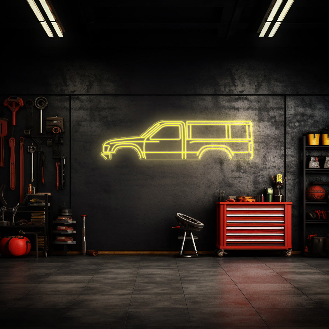 This eye-catching Hilux 1990 Neon Silhouette will add a beautiful spark of light and modern elegance to your room, office, or garage, and will catch the attention of any racing or car enthusiast.
