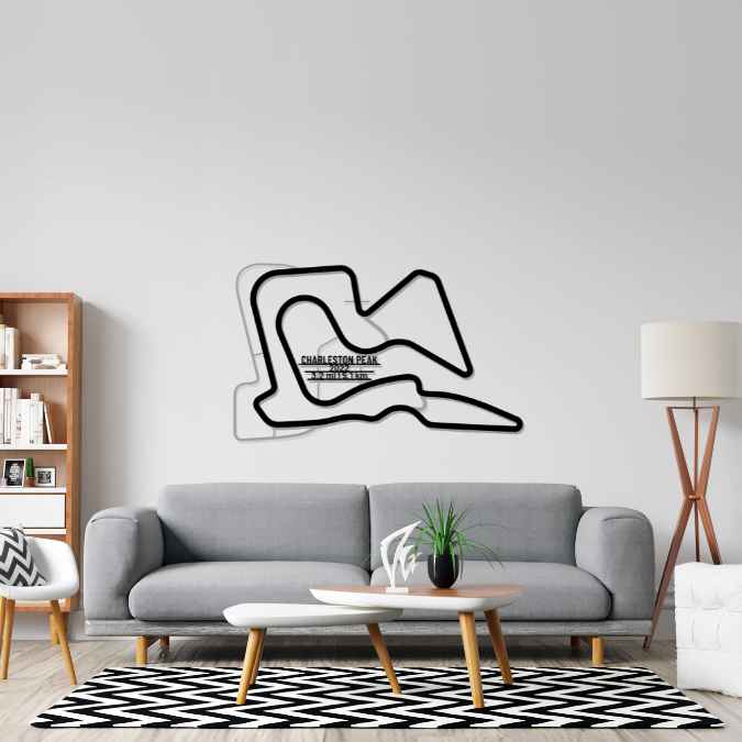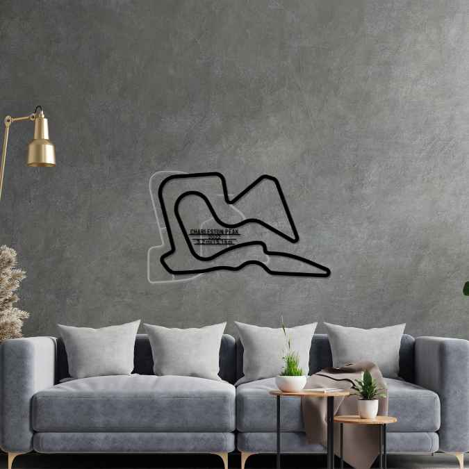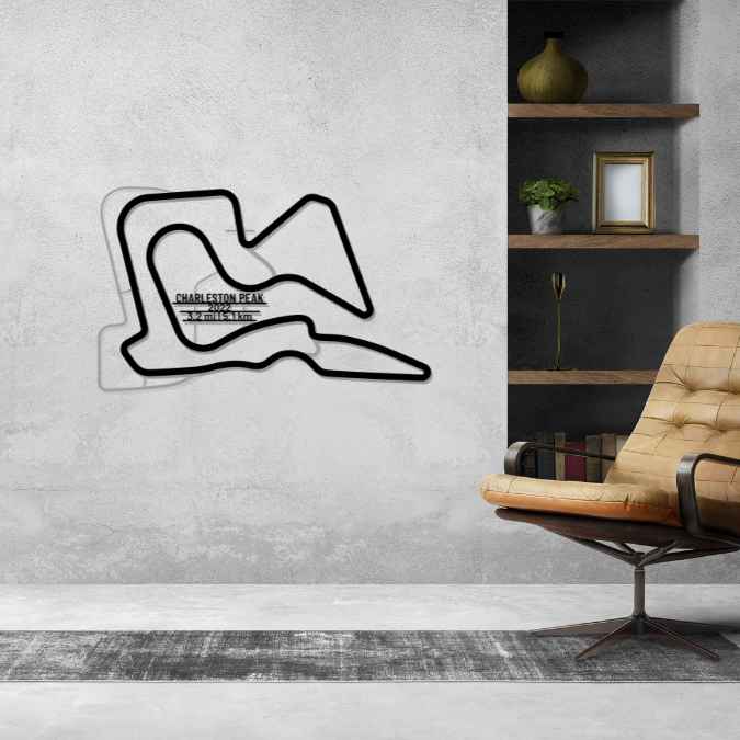 This Charleston Peak metal Silhouette is a multilayer and multicolor 3 piece wall art. It includes the track in our classic black finish and the surrounding area in a shiny and sparkly gray color. To top it off, we attach a metal plate, with the name of the track, its distance and the date of construction. This masterpiece alone or in combination with any of our other products will give your office, room or garage a unique look that will catch the attention of any racing or car enthusiast and will add a subtle touch as well motorsport spirit to your home's interior design.