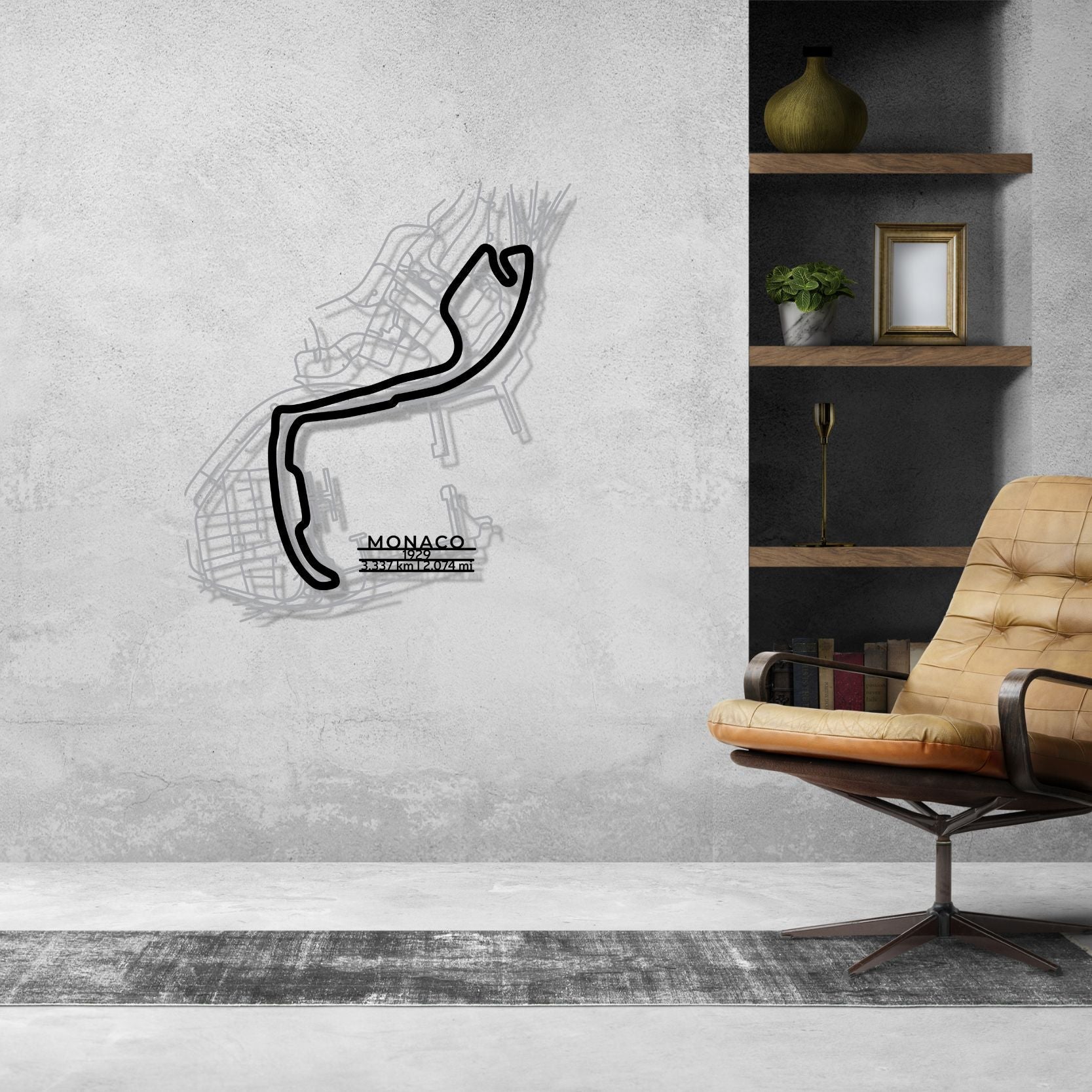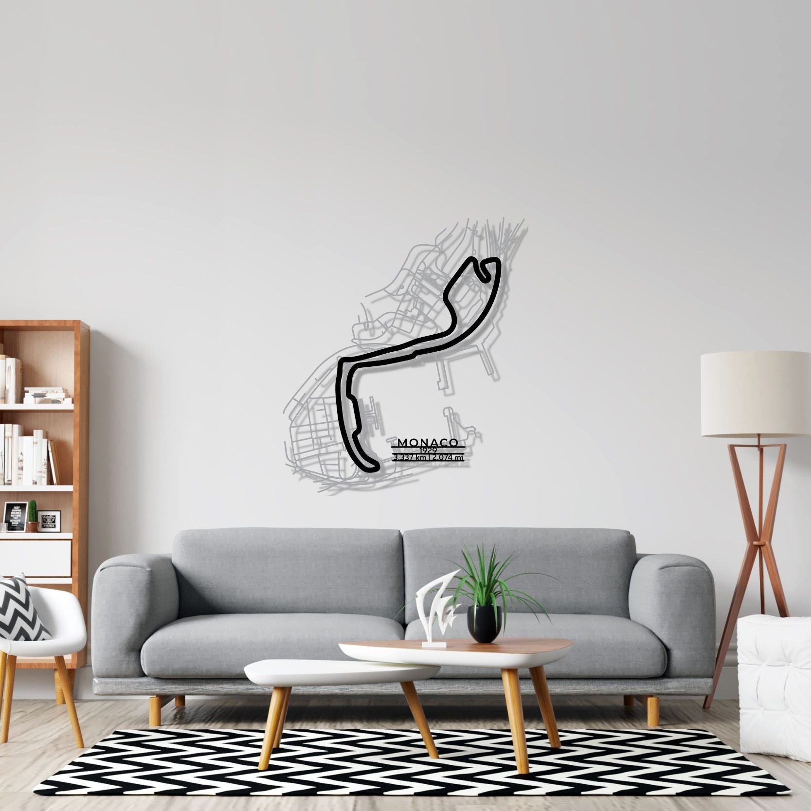 This Circuit de Monaco track metal Silhouette is our first multilayer and multicolor 3 piece wall art. It includes the track in our classic black finish and the surrounding area in a shiny and sparkly gray color. To top it off, we attach a metal plate, with the name of the track, its distance and the date of construction. This masterpiece alone or in combination with any of our other products will give your office, room or garage a unique look that will catch the attention of any racing or car enthusiast and will add a subtle touch as well motorsport spirit to your home's interior design.