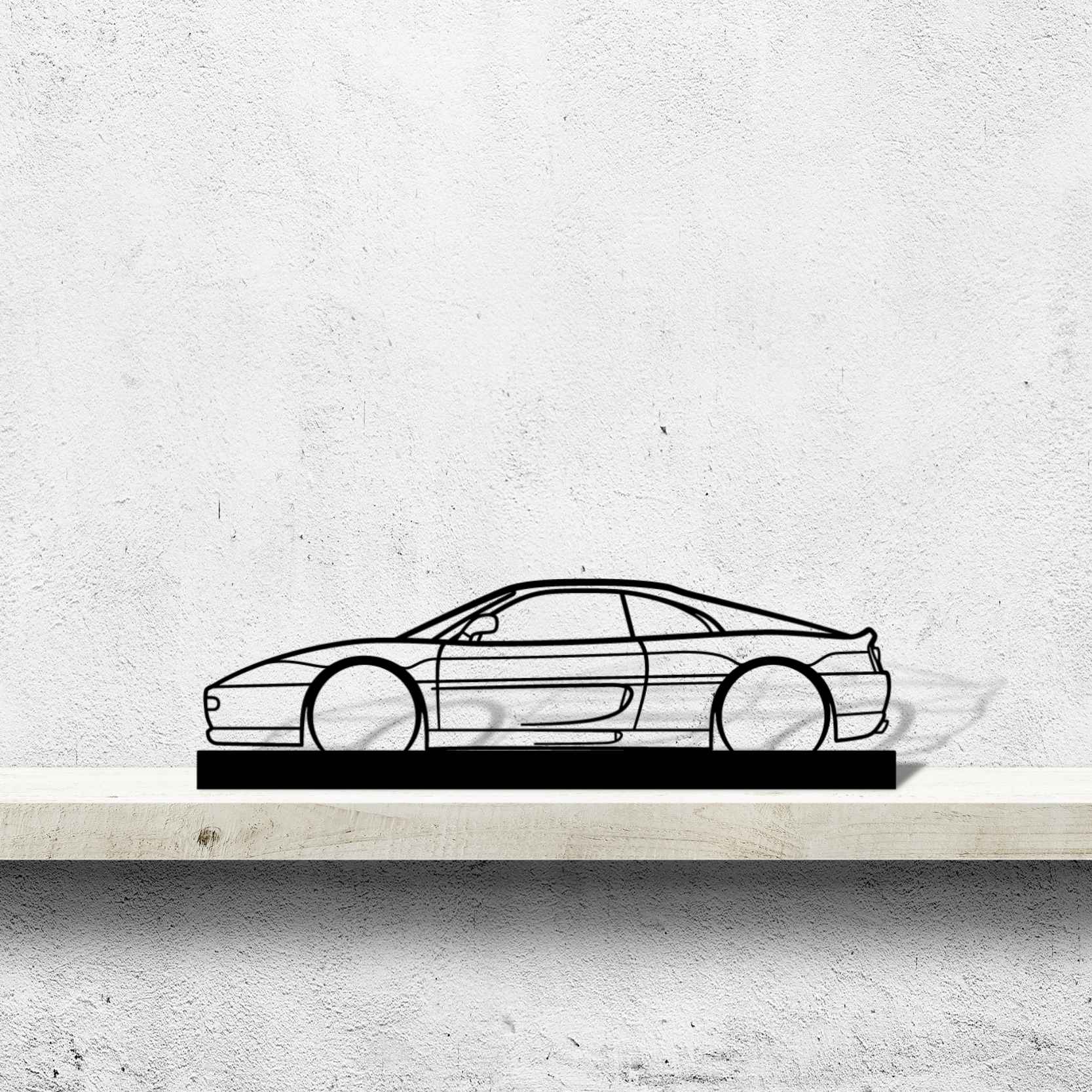 This F355 Standing Silhouette will give your office table, living room or garage shelf a unique look that will catch the attention to any racing, car enthusiast and will add a subtle touch to your home design.