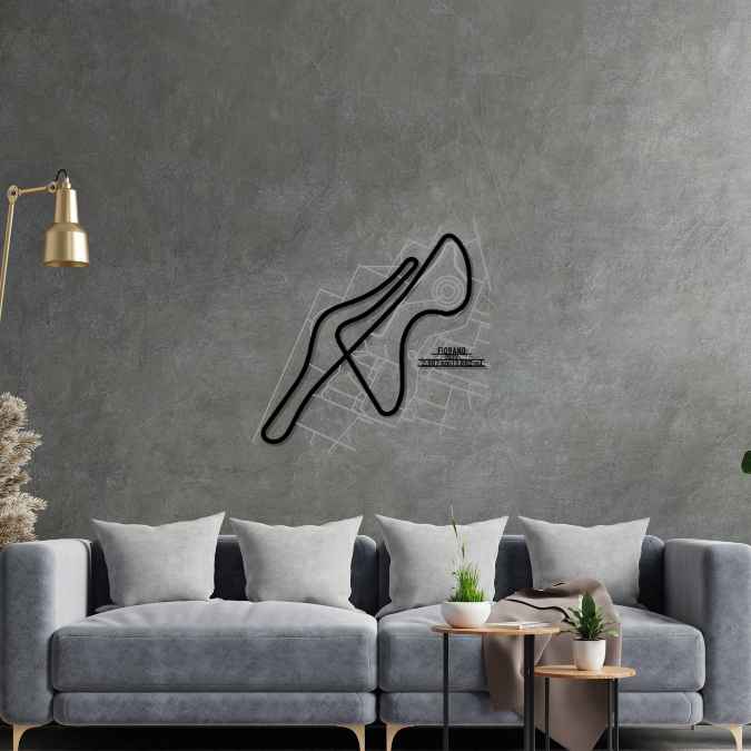 This Fiorano metal Silhouette is a multilayer and multicolor 3 piece wall art. It includes the track in our classic black finish and the surrounding area in a shiny and sparkly gray color. To top it off, we attach a metal plate, with the name of the track, its distance and the date of construction. This masterpiece alone or in combination with any of our other products will give your office, room or garage a unique look that will catch the attention of any racing or car enthusiast and will add a subtle touch as well motorsport spirit to your home's interior design.