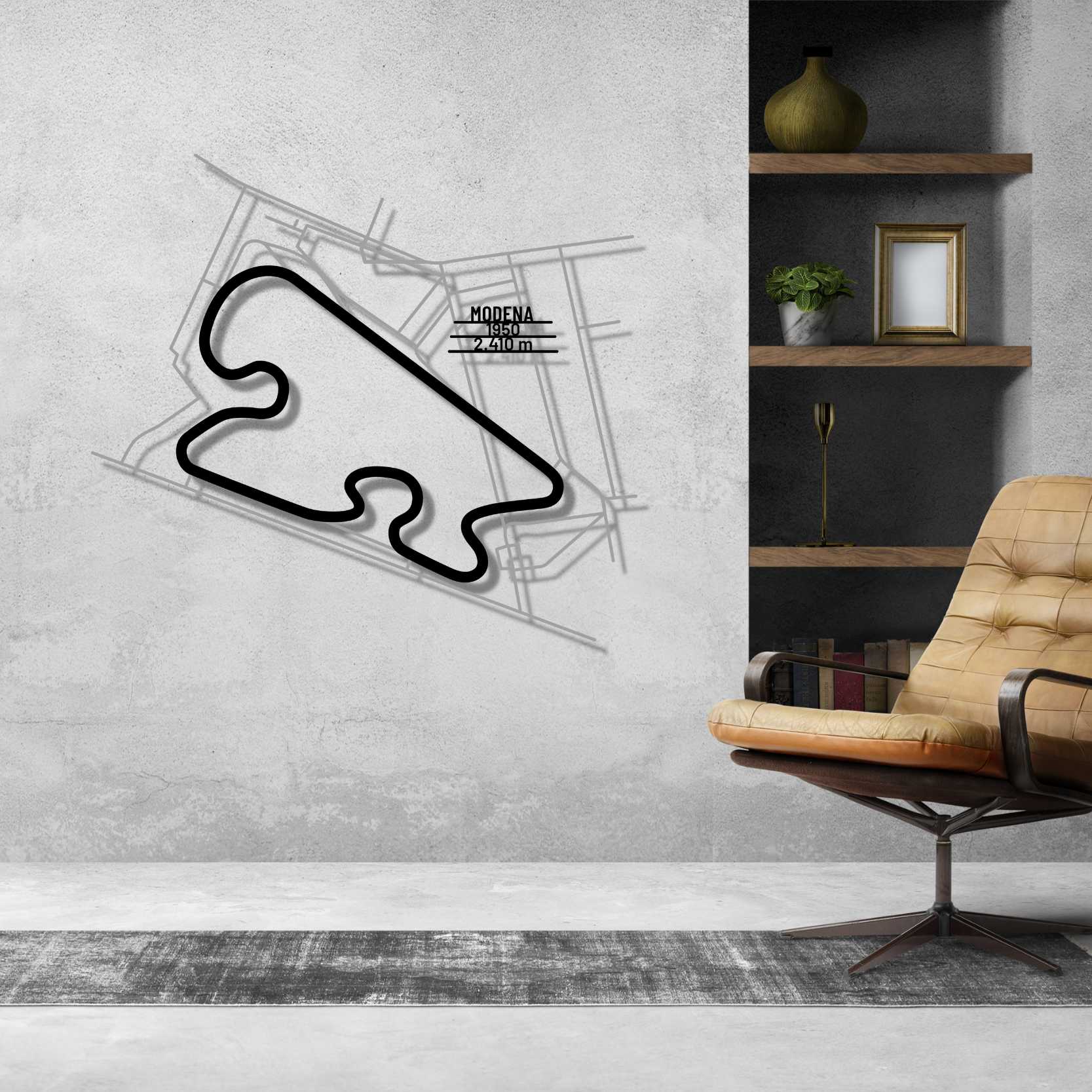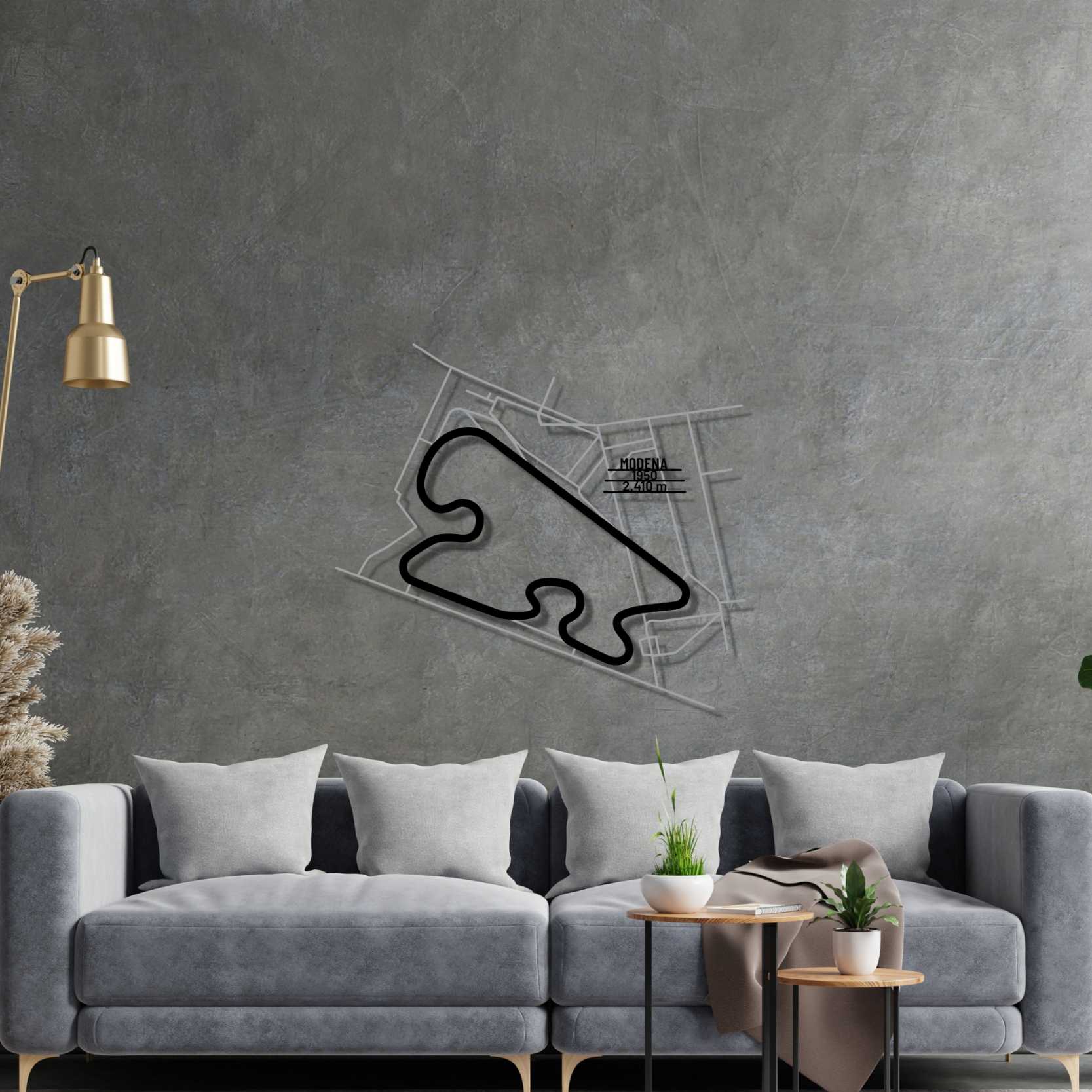 This Modena metal Silhouette is a multilayer and multicolor 3 piece wall art. It includes the track in our classic black finish and the surrounding area in a shiny and sparkly gray color. To top it off, we attach a metal plate, with the name of the track, its distance and the date of construction. This masterpiece alone or in combination with any of our other products will give your office, room or garage a unique look that will catch the attention of any racing or car enthusiast and will add a subtle touch as well motorsport spirit to your home's interior design.