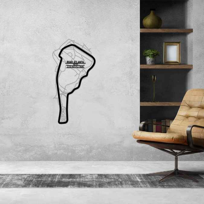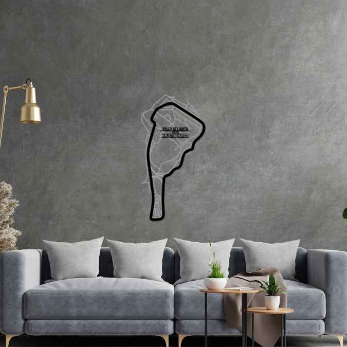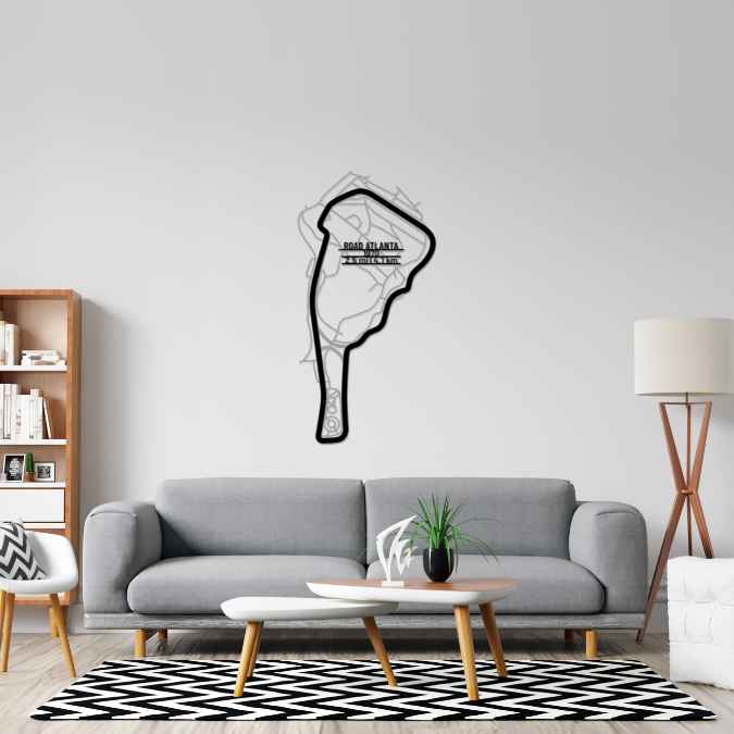 This Road Atlanta metal Silhouette is a multilayer and multicolor 3 piece wall art. It includes the track in our classic black finish and the surrounding area in a shiny and sparkly gray color. To top it off, we attach a metal plate, with the name of the track, its distance and the date of construction. This masterpiece alone or in combination with any of our other products will give your office, room or garage a unique look that will catch the attention of any racing or car enthusiast and will add a subtle touch as well  motorsport spirit to your home's interior design.