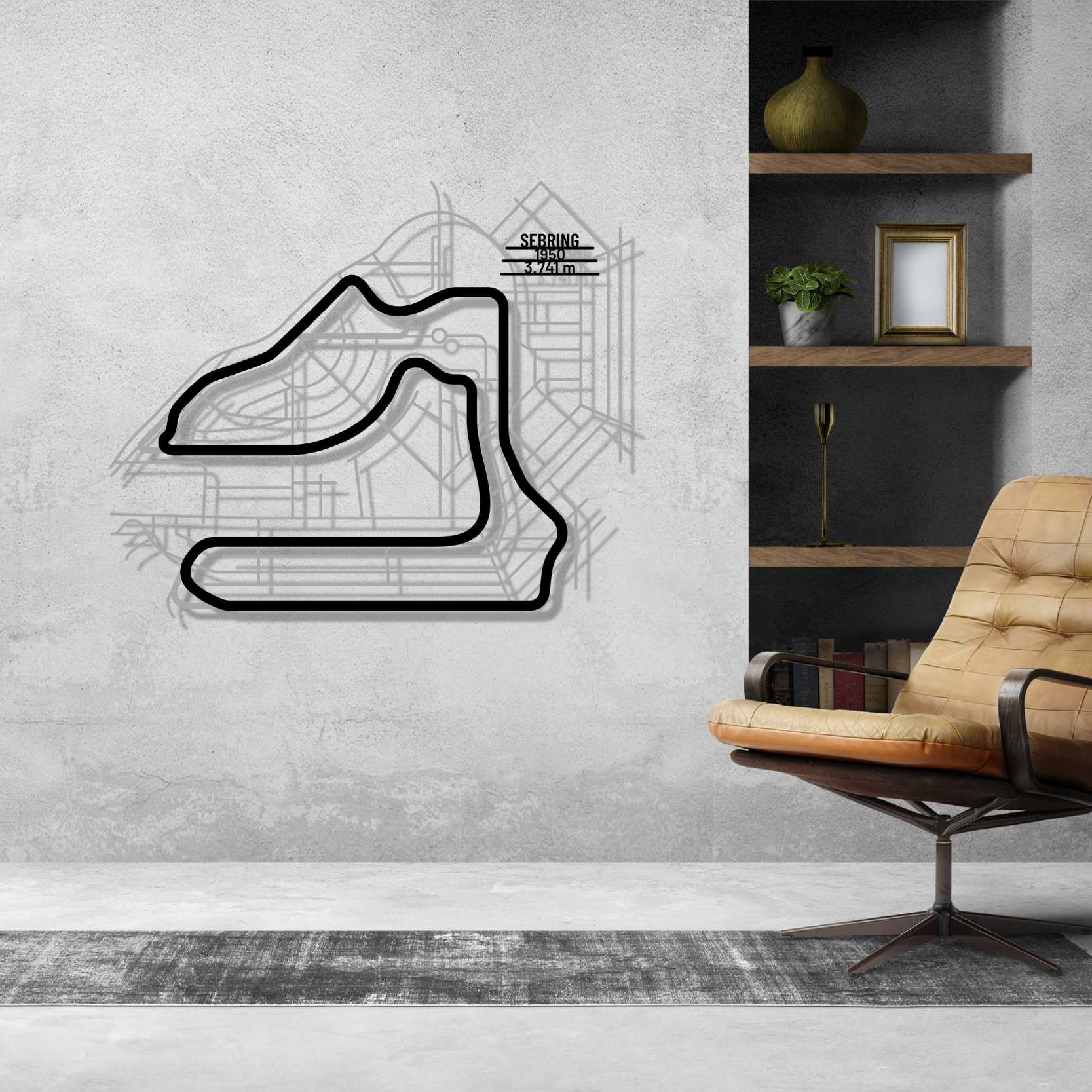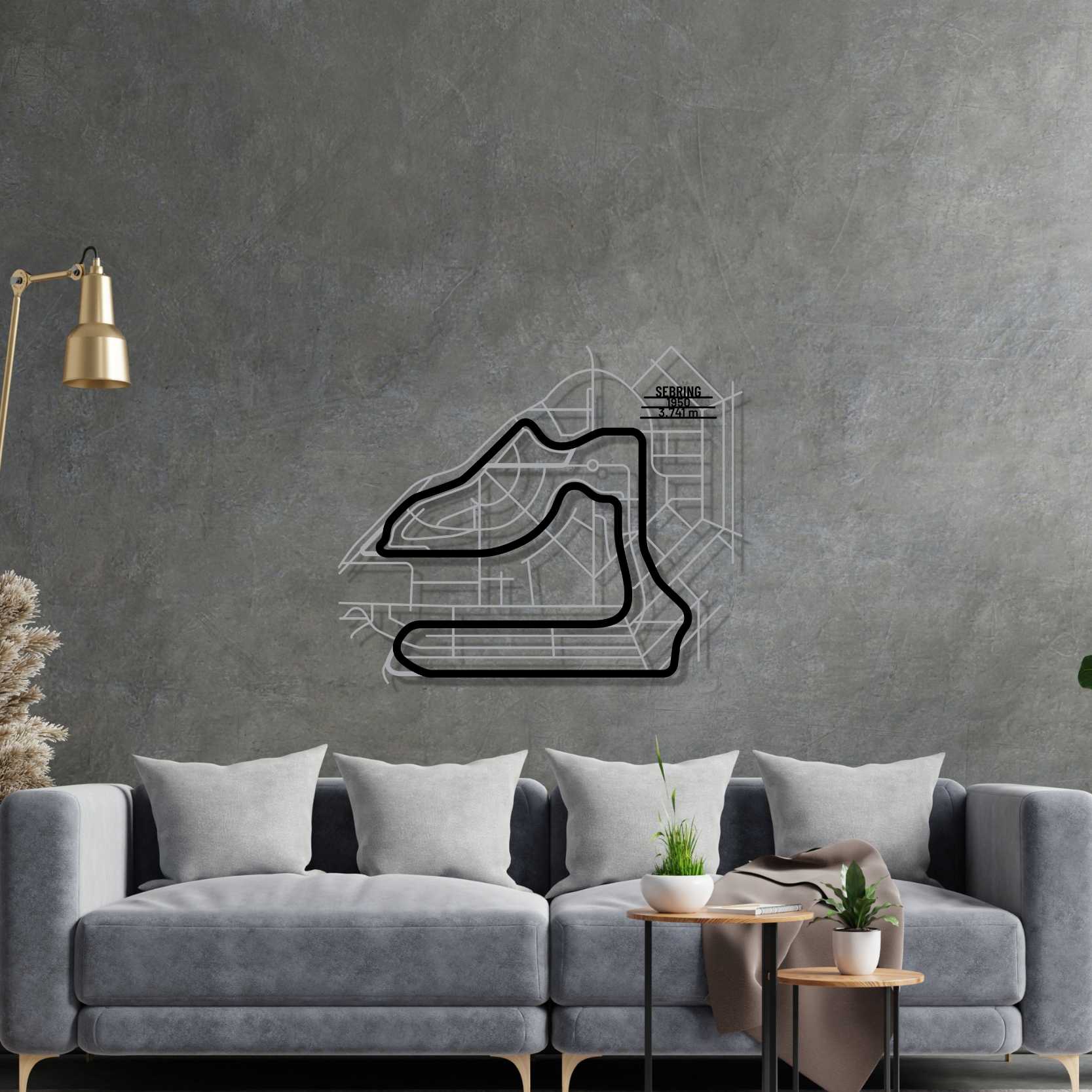 This Sebring metal Silhouette is a multilayer and multicolor 3 piece wall art. It includes the track in our classic black finish and the surrounding area in a shiny and sparkly gray color. To top it off, we attach a metal plate, with the name of the track, its distance and the date of construction. This masterpiece alone or in combination with any of our other products will give your office, room or garage a unique look that will catch the attention of any racing or car enthusiast and will add a subtle touch as well motorsport spirit to your home's interior design.