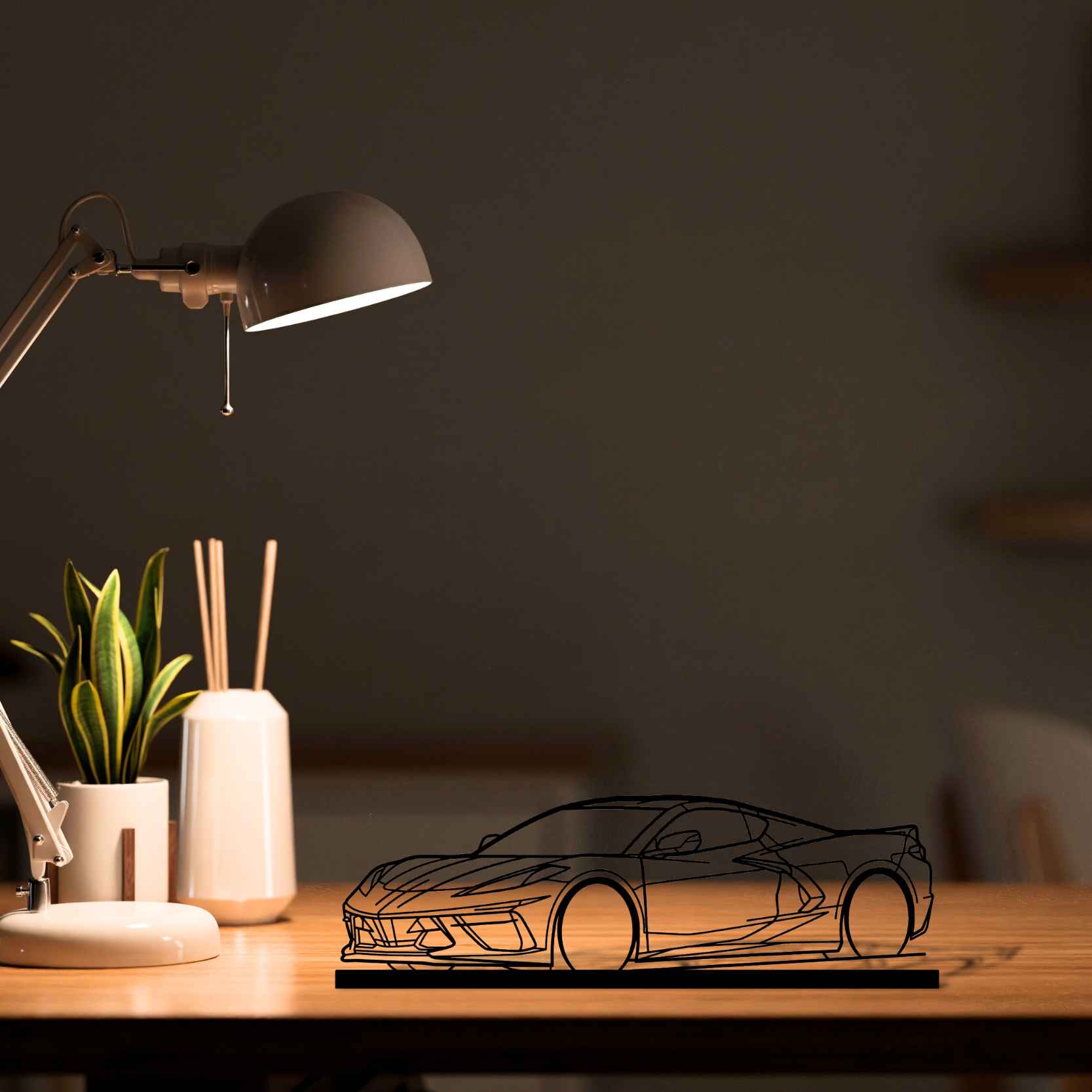 This Corvette C8 Front Angle Standing Silhouette will give your office table, living room or garage shelf a unique look that will catch the attention to any racing, car enthusiast and will add a subtle touch to your home design.