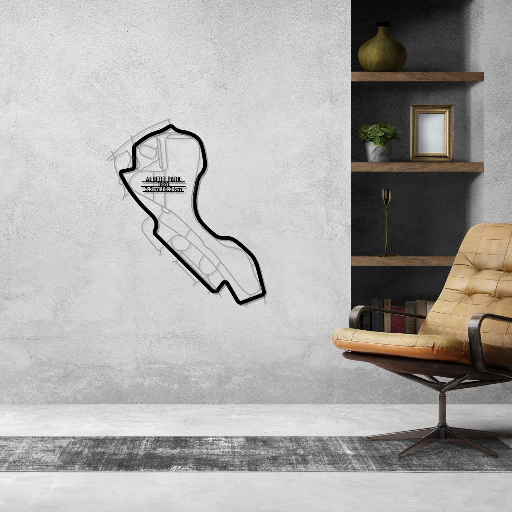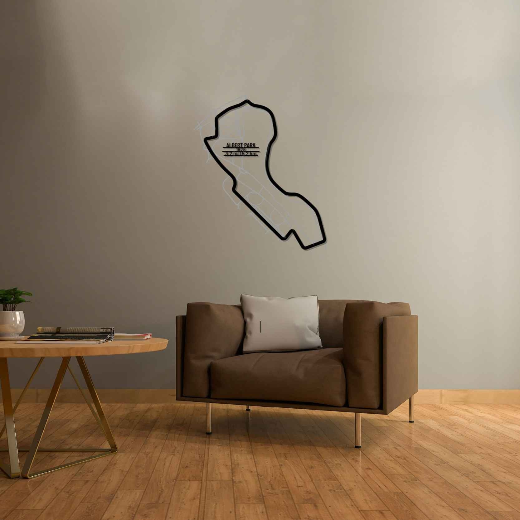 This Albert Park metal Silhouette is a multilayer and multicolor 3 piece wall art. It includes the track in our classic black finish and the surrounding area in a shiny and sparkly gray color. To top it off, we attach a metal plate, with the name of the track, its distance and the date of construction. This masterpiece alone or in combination with any of our other products will give your office, room or garage a unique look that will catch the attention of any racing or car enthusiast and will add a subtle touch as well  motorsport spirit to your home's interior design.
