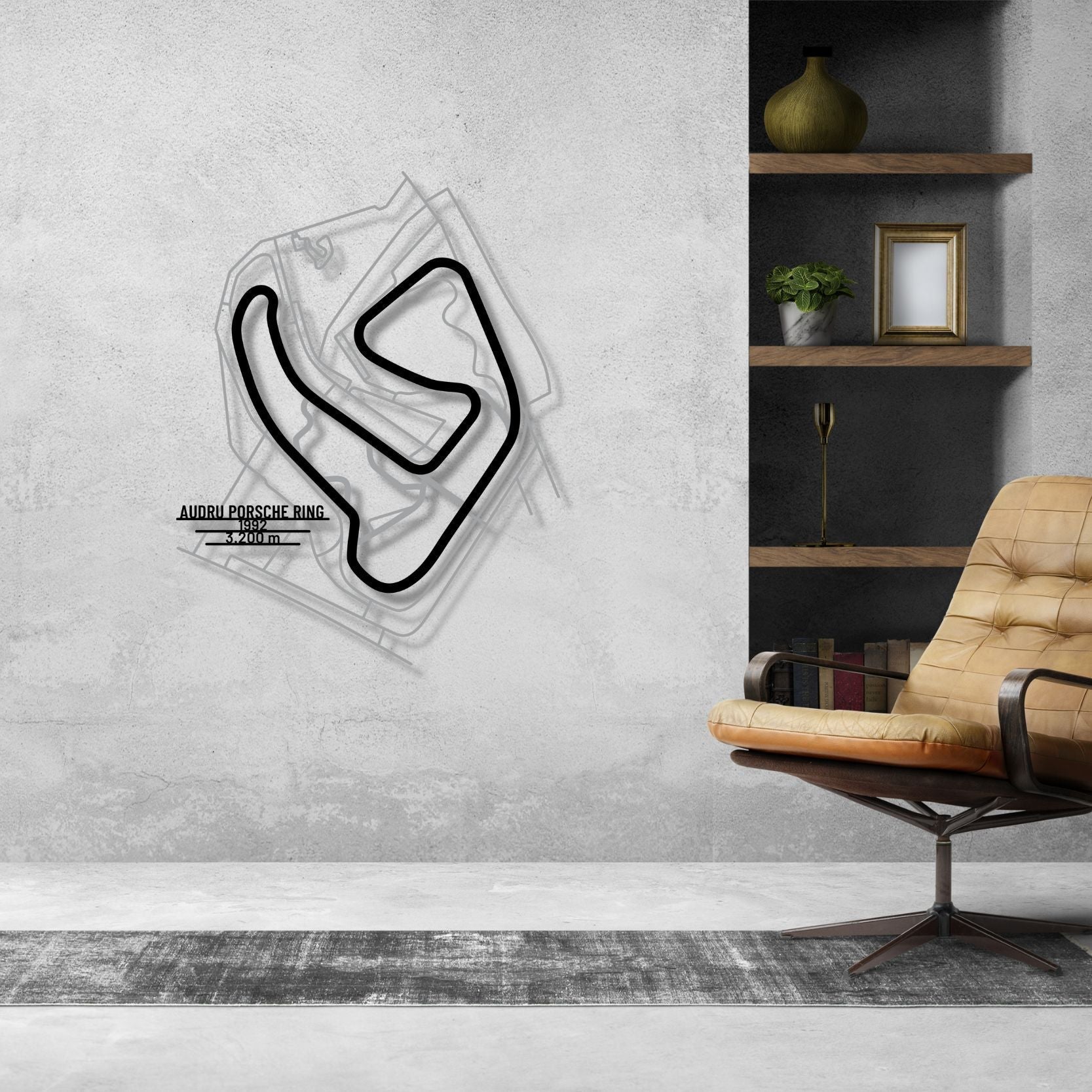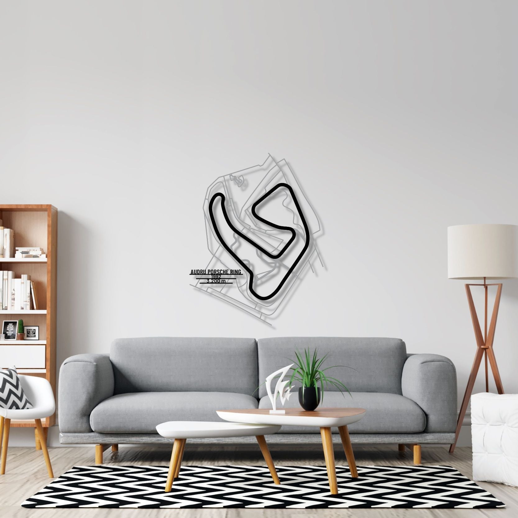 This Audru Ring metal Silhouette is a multilayer and multicolor 3 piece wall art. It includes the track in our classic black finish and the surrounding area in a shiny and sparkly gray color. To top it off, we attach a metal plate, with the name of the track, its distance and the date of construction. This masterpiece alone or in combination with any of our other products will give your office, room or garage a unique look that will catch the attention of any racing or car enthusiast and will add a subtle touch as well  motorsport spirit to your home's interior design.