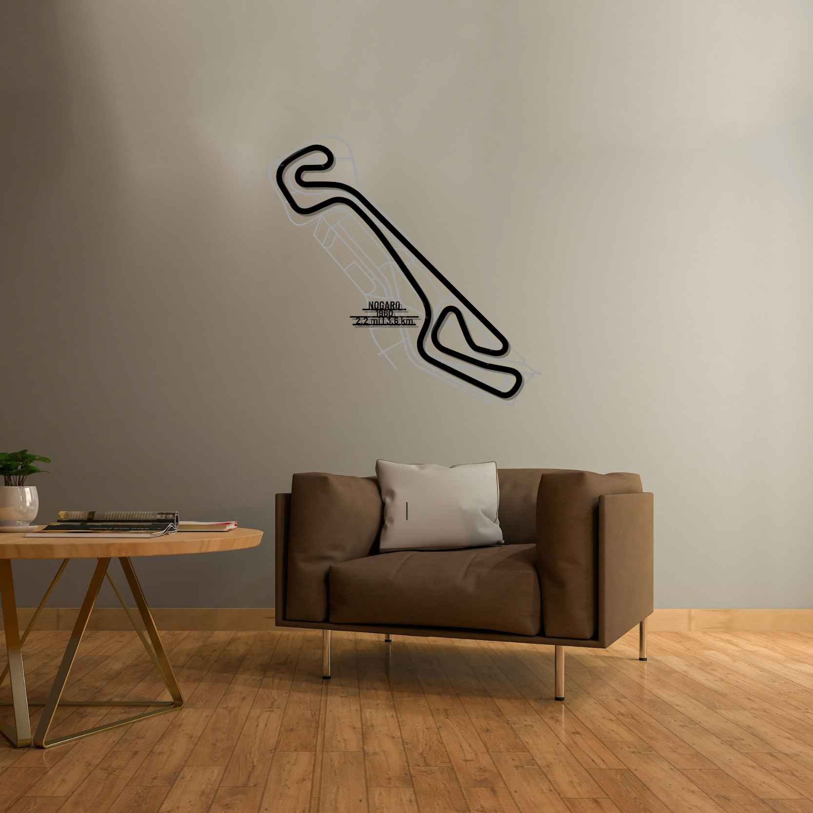 This Nogaro metal Silhouette is a multilayer and multicolor 3 piece wall art. It includes the track in our classic black finish and the surrounding area in a shiny and sparkly gray color. To top it off, we attach a metal plate, with the name of the track, its distance and the date of construction. This masterpiece alone or in combination with any of our other products will give your office, room or garage a unique look that will catch the attention of any racing or car enthusiast and will add a subtle touch as well motorsport spirit to your home's interior design.
