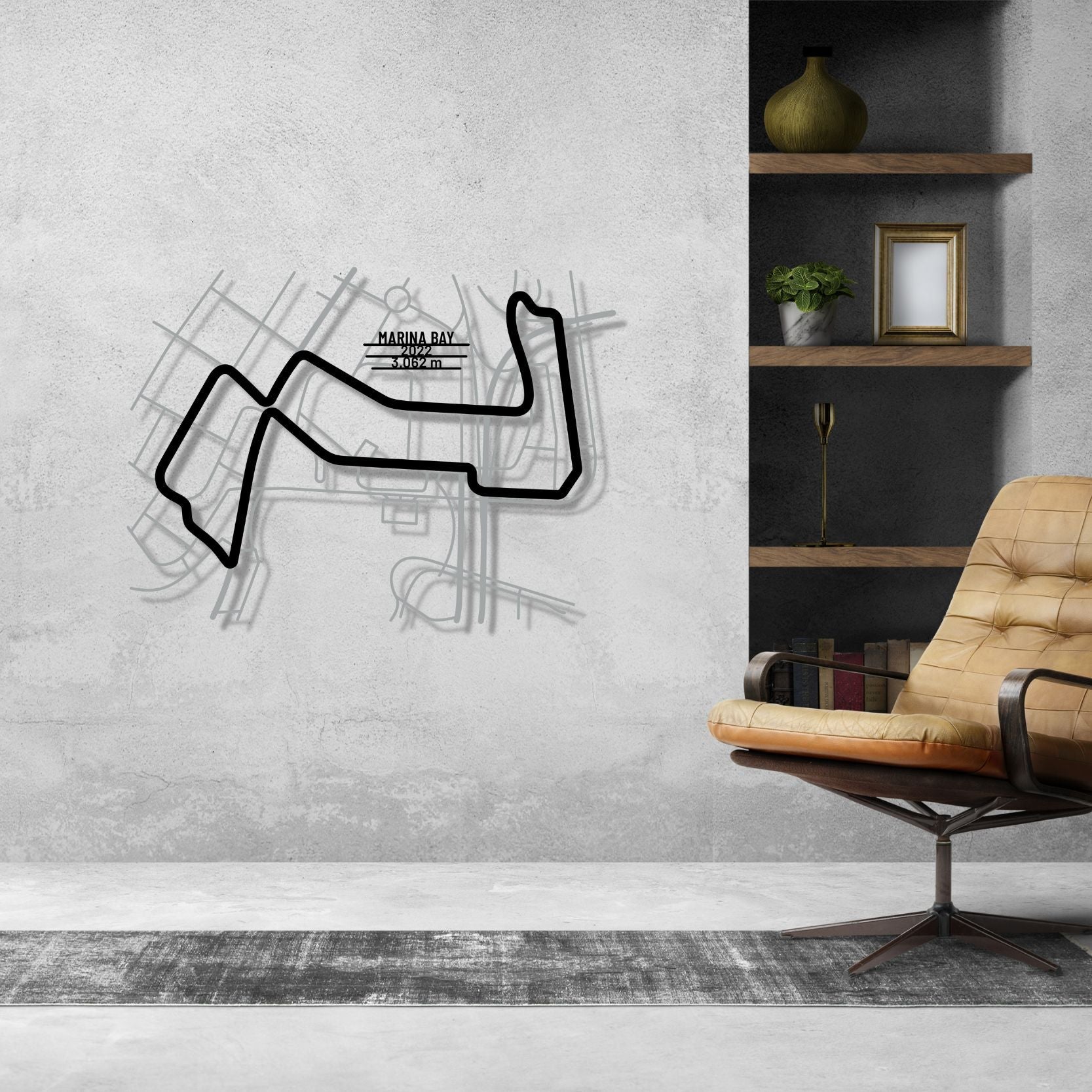 This Singapore Marina Bay metal Silhouette is our first multilayer and multicolor 3 piece wall art. It includes the track in our classic black finish and the surrounding area in a shiny and sparkly gray color. To top it off, we attach a metal plate, with the name of the track, its distance and the date of construction. This masterpiece alone or in combination with any of our other products will give your office, room or garage a unique look that will catch the attention of any racing or car enthusiast and will add a subtle touch as well motorsport spirit to your home's interior design.